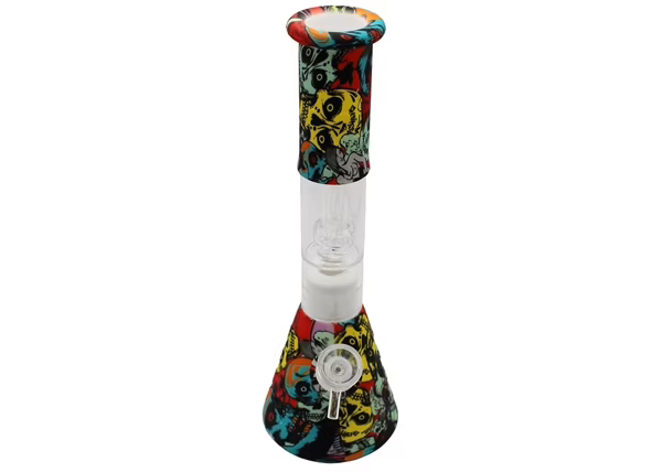 Graphic Design Glass Perk Silicone Hybrid Beaker Water Pipe. Colors May Vary. 10″. 1ct.