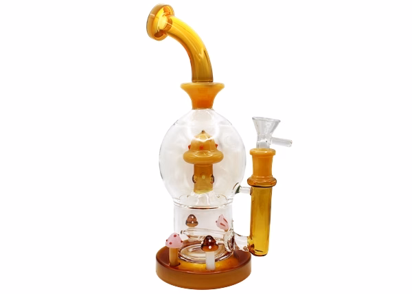 Mushroom House Inline Perk Water Pipe. 14mm Bowl Included. 10″. 1ct.