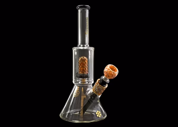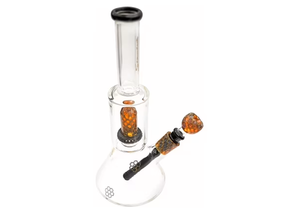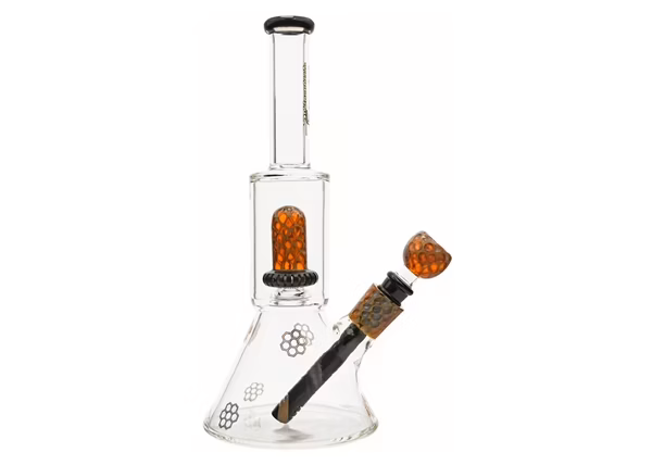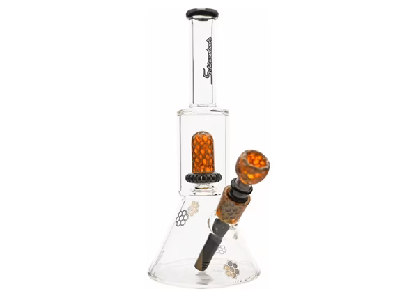 Stratus Shower Perk Beaker Water Pipe. N632. 14mm Bowl and Stem Included. Colors May Vary. 10″. 1ct.