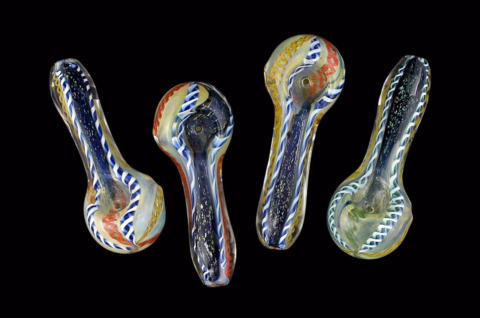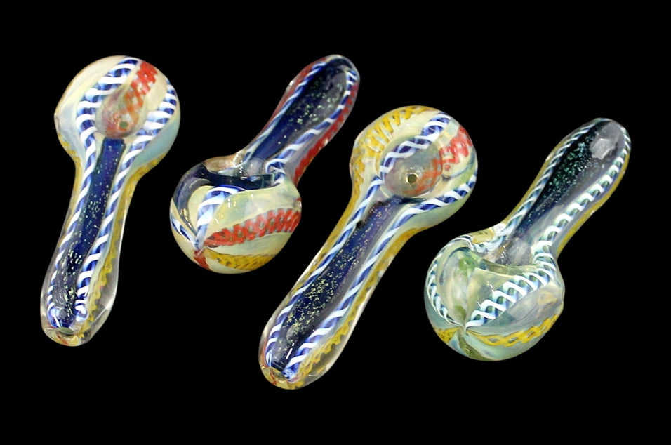 Fuming Rope Dichroic Spoon Hand Pipe. 3″. 10ct.