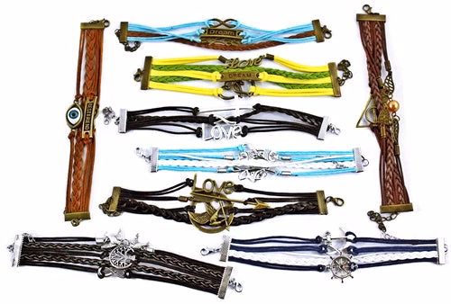 Leather Hand-Woven Fashion Charm Bracelet. Styles And Colors May Vary. 10ct.