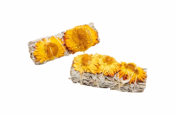 Sage Smudge Stick – White Sage – Yellow Strawflower. 4″. 10ct.
