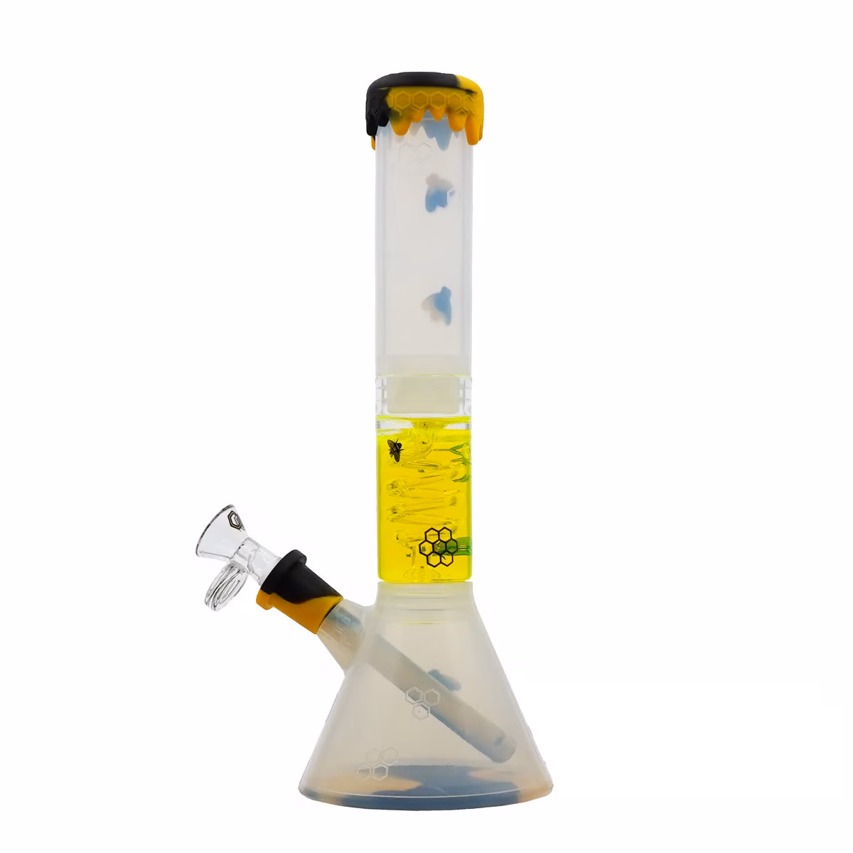 Silicone Bee Clear Freezable Perk Water Pipe. Bowl and Stem Included. Colors May Vary. 11″. 1ct.