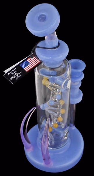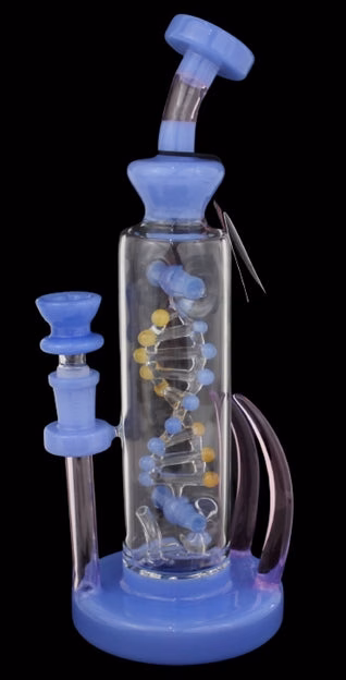 Spinning DNA Helix Perk Dual Horns Water Pipe. 14mm Bowl Included. 11″. 1ct.