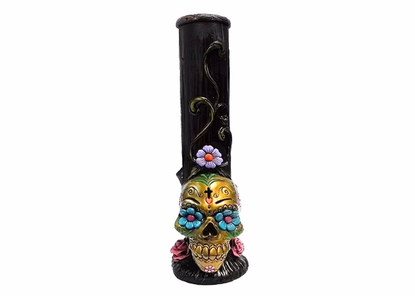 Pichincha Hand Crafted Water Pipe – Gold Sugar Skull. 12″. 1ct.