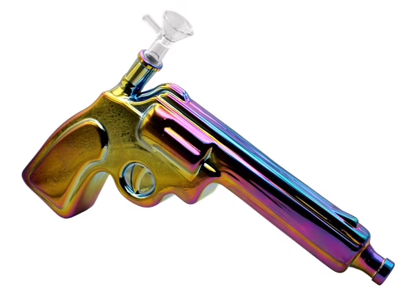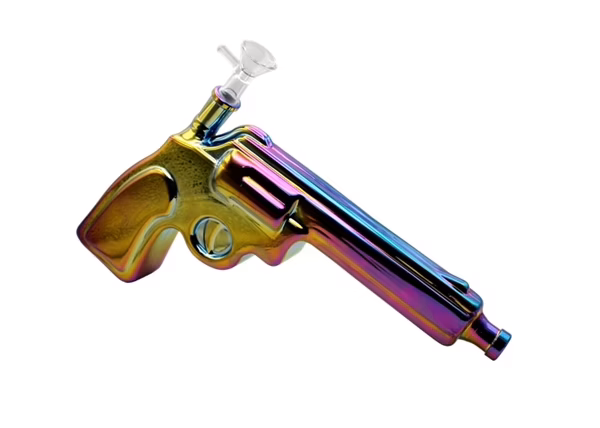 Glass on Glass Pistol Gun Water Pipe. Slider Bowl Included. Colors May Vary. 12″. 1ct.