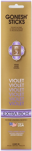 Gonesh Extra Rich Stick – Violet Incense. 12 Packs With 20 Sticks Per Pack.
