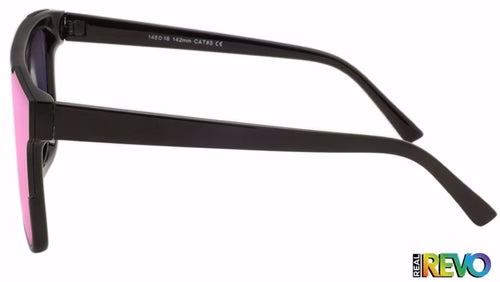 - 2PC Hot Pink Lens, Polished Black Semi-Rimless Frame, Polished Black Temple