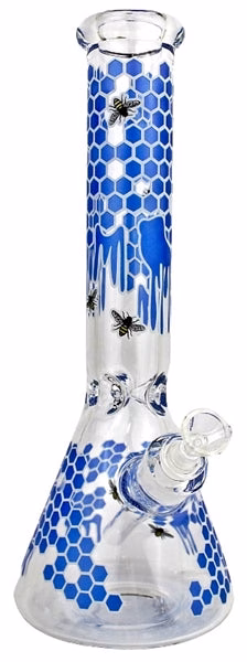 Glass On Glass Honeycomb Bee Art Beaker Water Pipe. Bowl And Stem Included. 13″. 1ct.