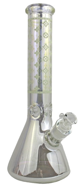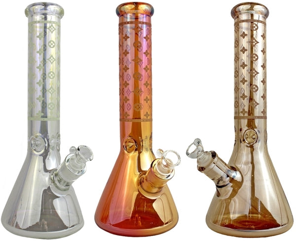 Glass On Glass Heavy Shiny Designer Beaker Water Pipe. Bowl And Stem Included. Color May Vary. 13″. 1ct.