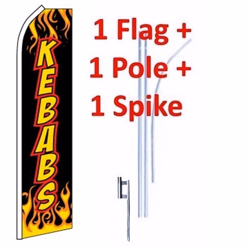 15′ Kebabs Windless Business Bow Swooper Feather Flag Kit. Designed to dispay the full advertisement without any wind, although they fly with a rippling effect with the slightest breeze.