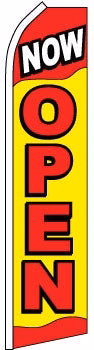 15′ Now Open Windless Business Bow Swooper Feather Flag Kit. Designed to dispay the full advertisement without any wind, although they fly with a rippling effect with the slightest breeze.