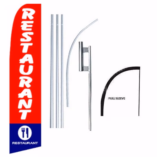 15′ Restaurant Windless Business Bow Swooper Feather Flag Kit. Designed to dispay the full advertisement without any wind, although they fly with a rippling effect with the slightest breeze.