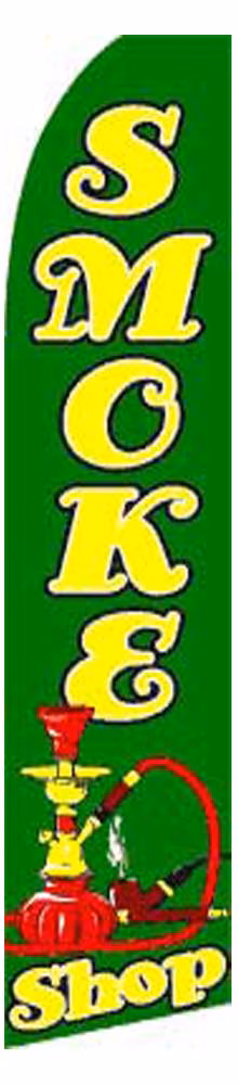 15 ft Smoke Shop Windless Business Bow Swooper Feather Flag Kit. Designed to dispay the full advertisement without any wind, although they fly with a rippling effect with the slightest breeze.