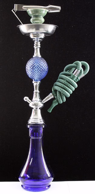 1 Hose Crystal Ball Hookah. Bases, Balls, Bowls And Hoses Come In Assorted Colors. 22″. 1ct.