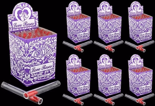 Glass Tube Love Roses 36pc Open End – Thick. 4″. 12mm. 24 Packs In A Case with 36 Tubes Per Pack.