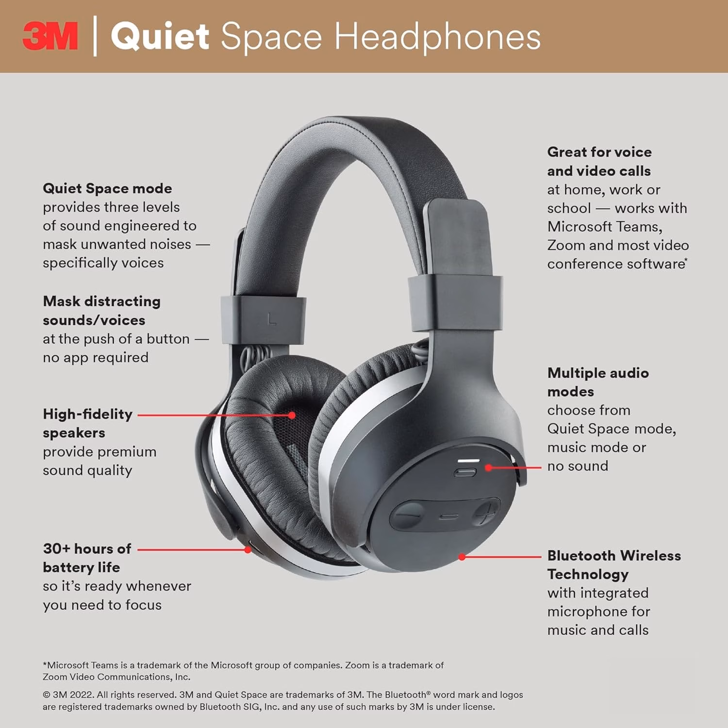 3M Quiet Space Headphones. Bluetooth. Wireless. 1ct.