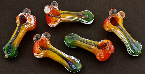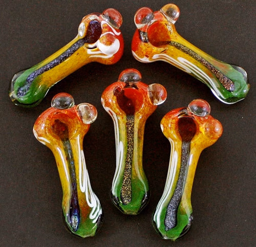 Rasta Frit Dichroic Marble Hand Pipe. 110g. 4″. 4ct.