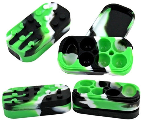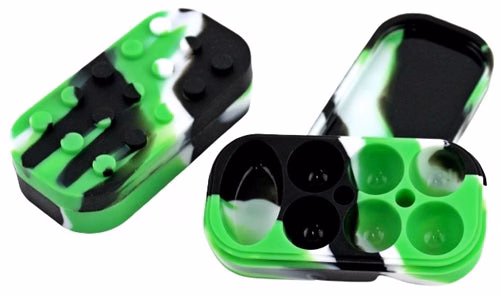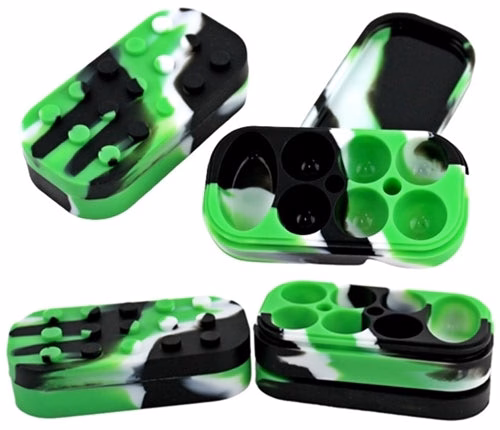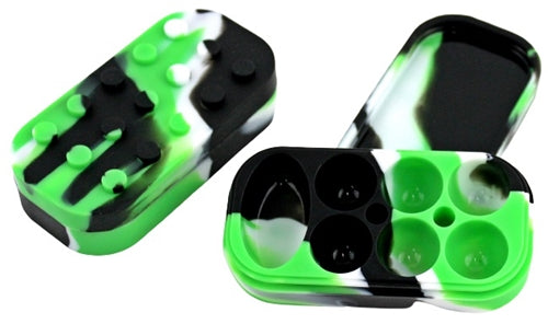 Stack-able 7 Compartment Silicone Stash Container. 4″ x 1″. Colors May Vary. 4ct.