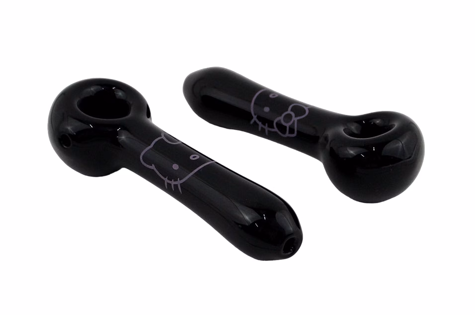Black Tube Pink Cat Hand Pipe. 5″. 1ct.