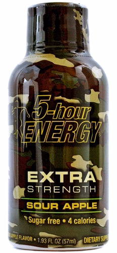 5-Hour Energy Extra Strength Sour Apple. Sugar Free. 4 Calories. 12 2oz Bottles In A Box Display. Free Shipping Not Available For 5-Hour Energy.