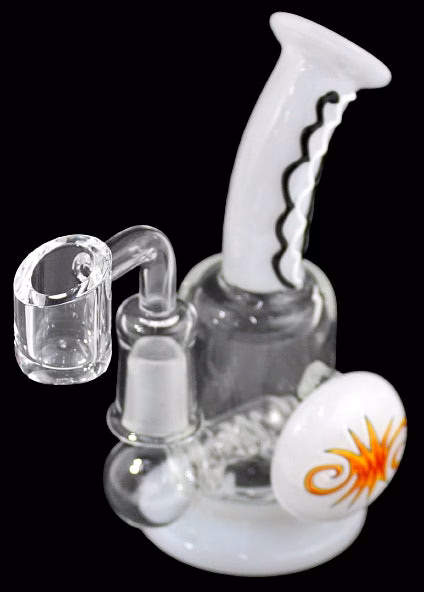 Inline Reversal Disc Art Curve Water Pipe. 14mm Banger Included. 1ct.