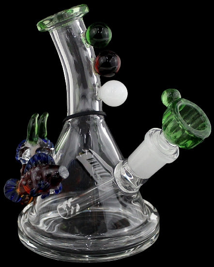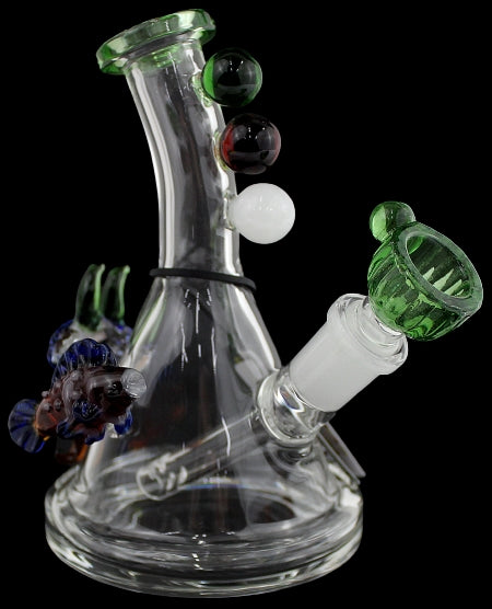 Monster Eye Fish Marble Beaker Water Pipe. 14mm Bowl Included. 5″. 1ct.