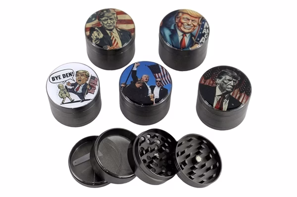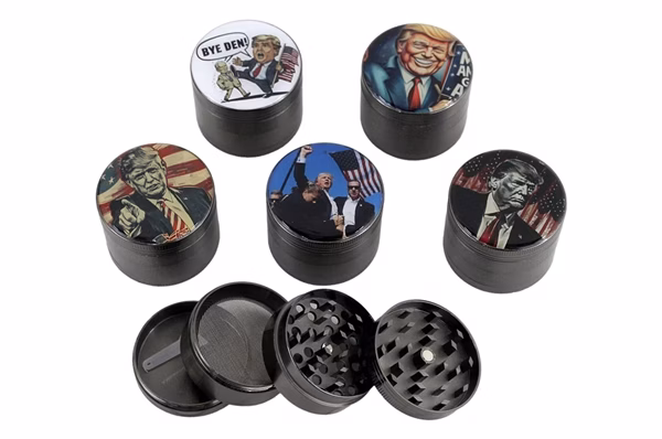 Trump Gun Metal Zinc Grinders – 50mm. Designs May Vary. 5ct.