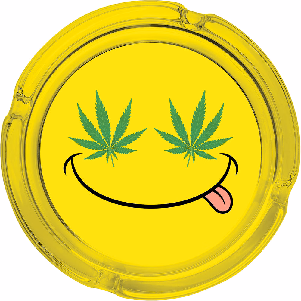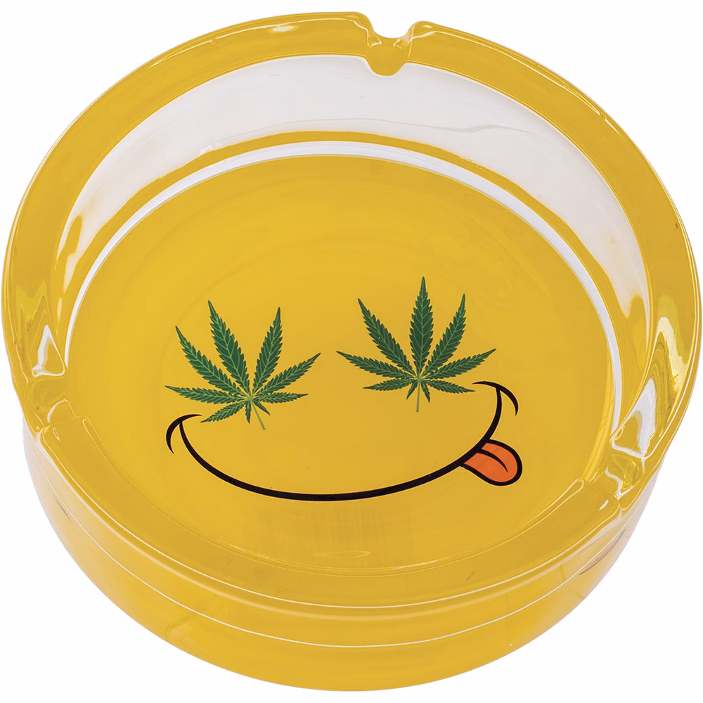 Yellow Smiley Leaf – Large Glass Ashtray. 6.25″ x 2″. 1ct.