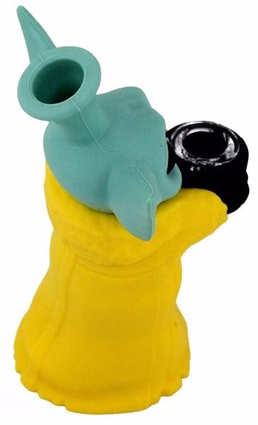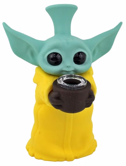 Silicone Bubbler Water Pipe – Baby Yoda Grogu Sipping Tea. Colors May Vary. 6″. 1ct.