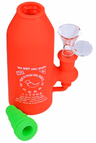 Siracha Hot Sauce Silicone Water Pipe. 14mm Bowl Included. 7″. 1ct.