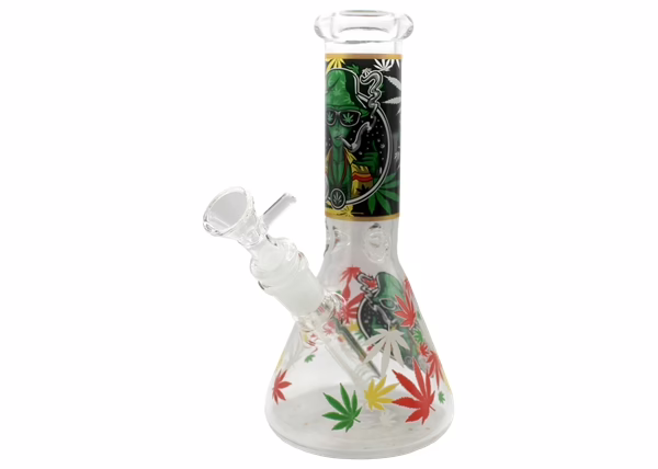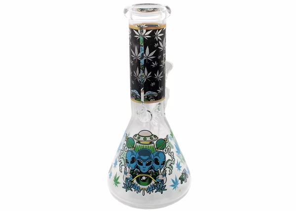Glass on Glass Beaker Water Pipe – Alien. Bowl and Stem Included. Design May Vary. 8″. 1ct.