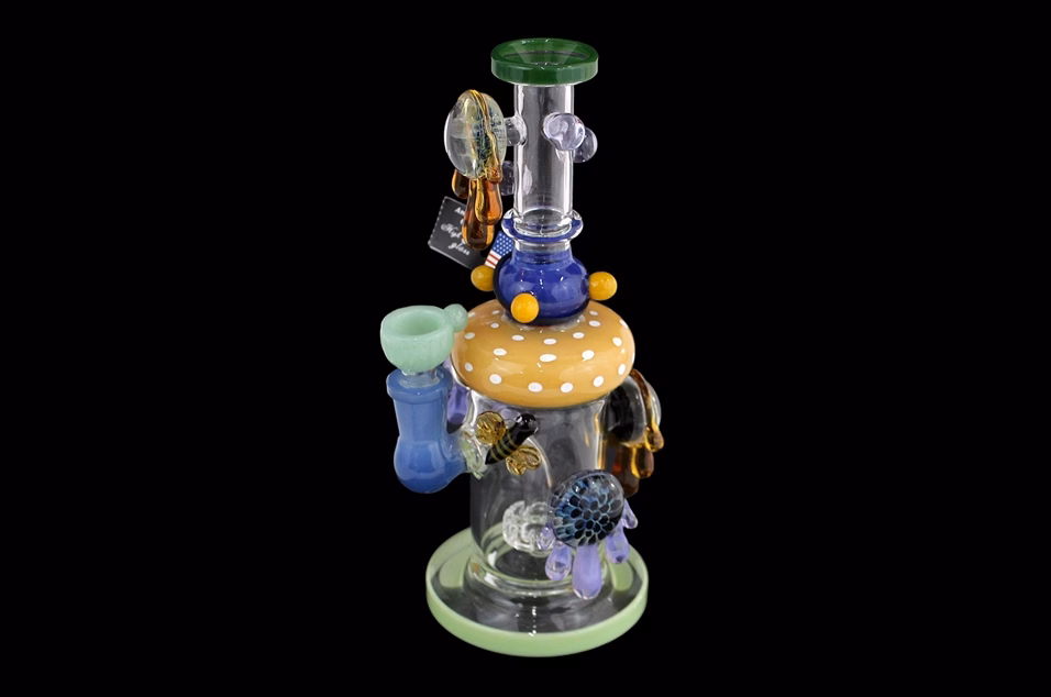 Honeycomb Oil Drip Worked Water Pipe. 14mm Bowl Included. Colors May Vary. 8″. 1ct.