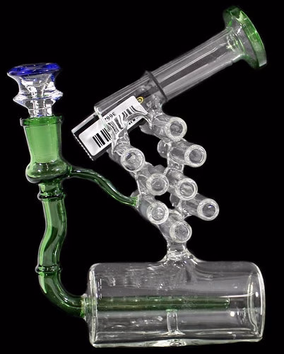 Inline Perk Swiss Neck Sailboat Water Pipe. 14mm Bowl Included. Colors May Vary. 8″. 1ct.