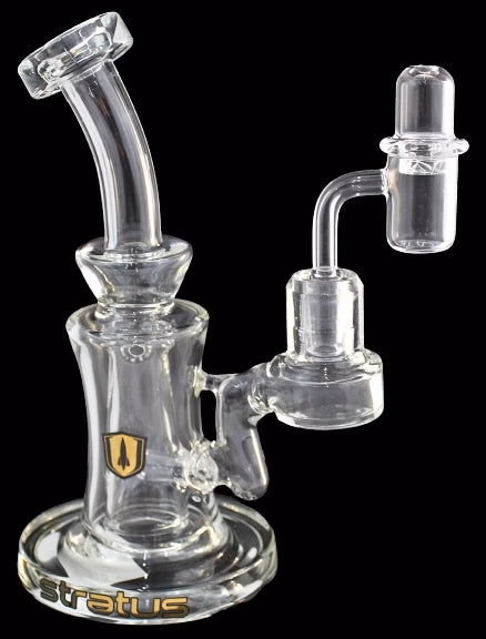 Stratus Glass Inside Chamber Diffuser Curve Oil Rig Water Pipe with Banger and Carb Cap. 14mm Banger Included. 8″. 1ct.