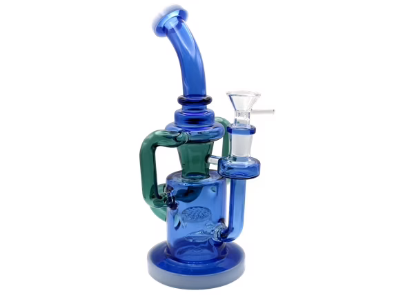 Triple Tube Honeycomb Perk Curved Recycler Water Pipe. 14mm Bowl Included. 9″. 1ct.
