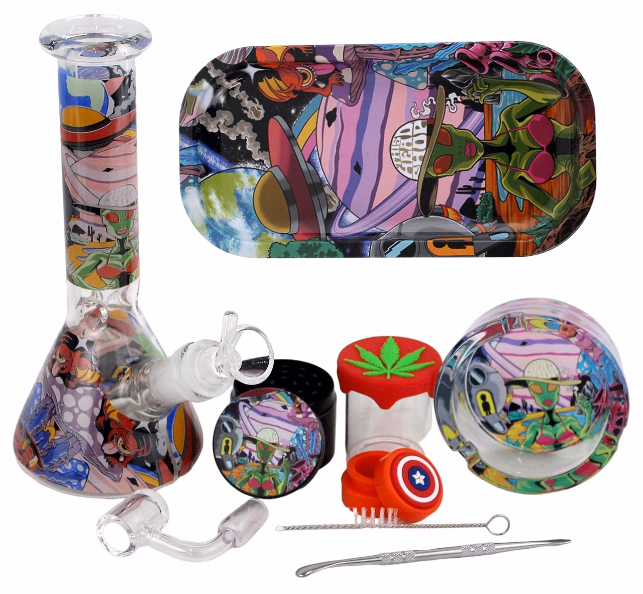 Beaker Water Pipe Kit – Allin1 Stash Grinder Ashtray Rolling Tray 11pc Set. 1ct. BUY 2 GET 1 FREE!!
