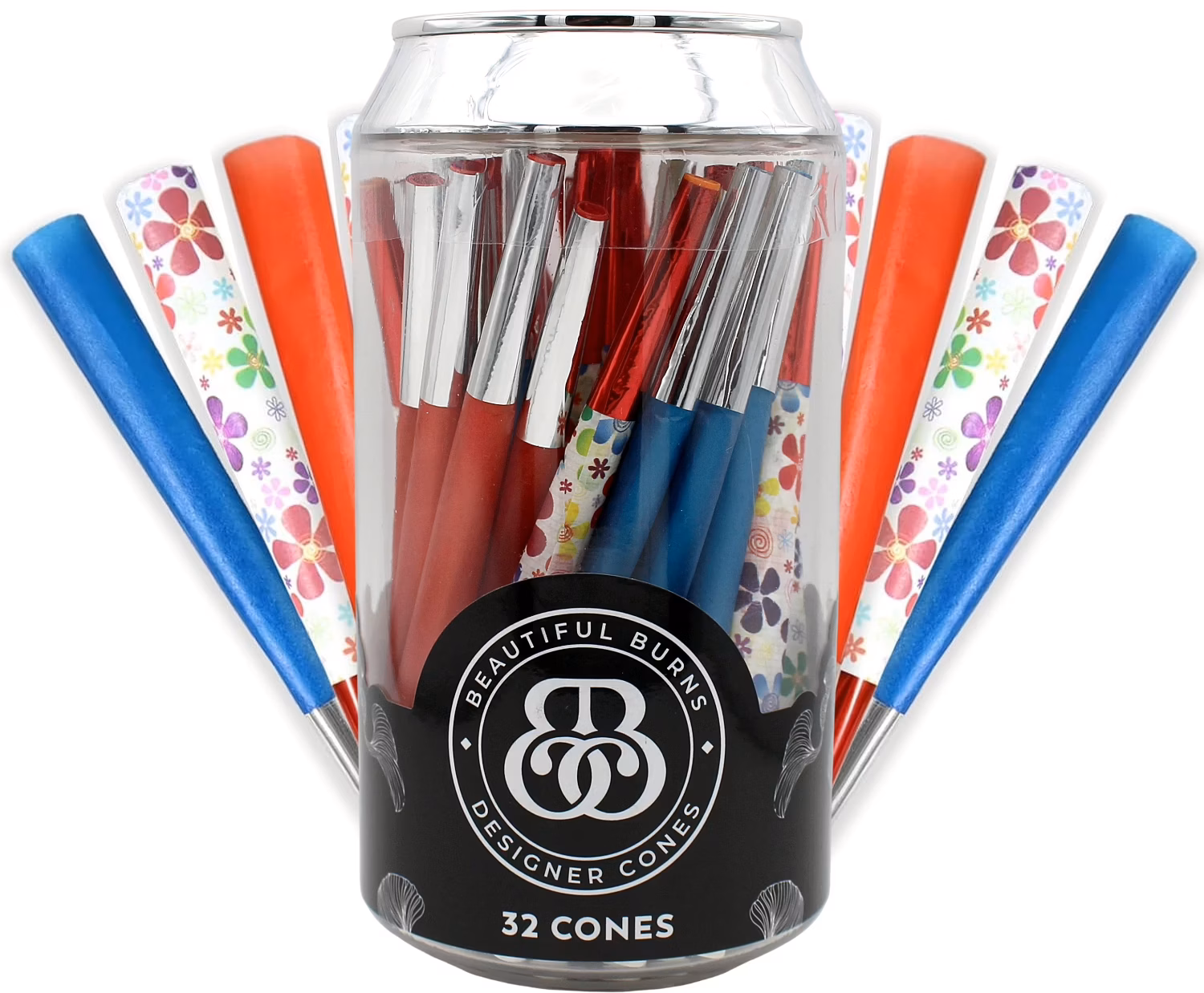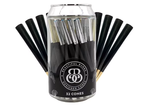 Beautiful Burns Soda Stash 98mm Designer Cones. 32 Cones in a Jar.
