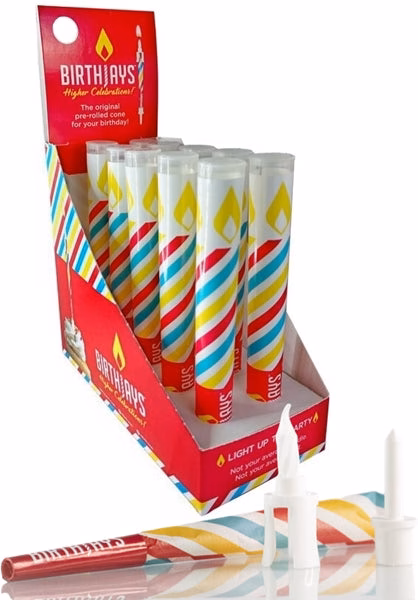 Birthjays Pre-Rolled Cones Birthday Candles. 10 Tubes In A Box Display.
