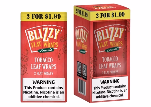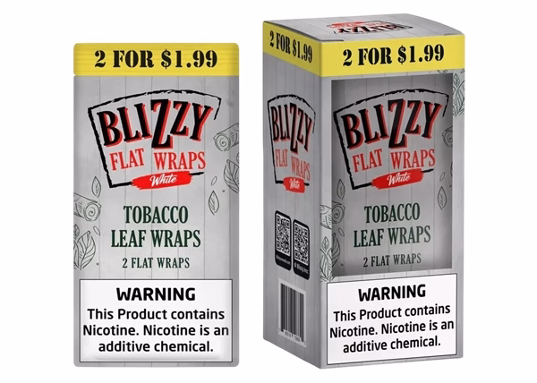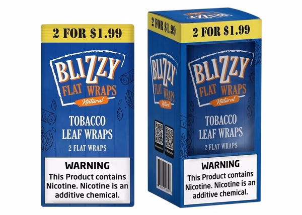 Blizzy Flat Wraps – Tobacco Leaf Wraps. 2 For $1.99 Pre Price. 20 Pouches in a Box Display with 2 Wraps Per Pouch.