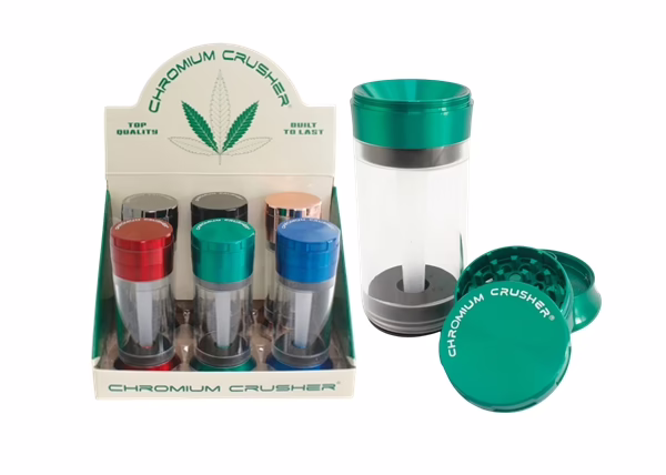 Chromium Crusher Funnel Grinder. 78mm. 6 Cone Filler Grinders in a Box Display.