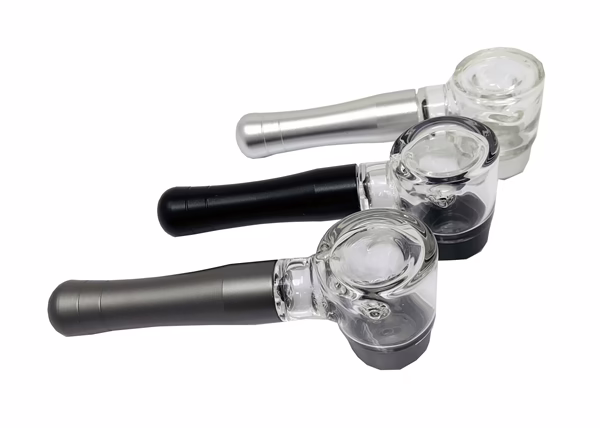 Chromium Crusher Glass Bowl CNC Flat Base Hand Pipe. Colors May Vary. 1ct.