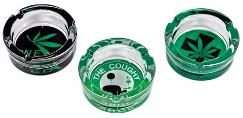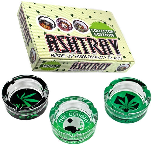 Collector Edition High Quality Glass Ashtray – Cannabis Design. 6 Ashtrays In A box Display.