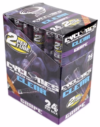 Cyclones Pre Rolled Transparent Cone – CLEAR – Grape. 24 Tubes In A Box With 2 Cones Per Tube.