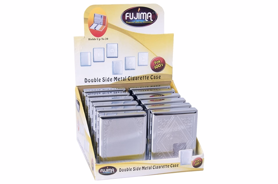 Double Sided Metal Cigarette Case – 100mm. 12 Cases in a Box Display.