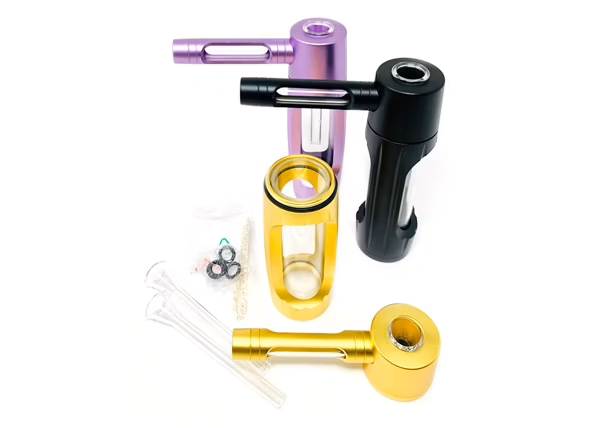 - interchangeable glass bowl: two long stem, one shorter stem for pipe