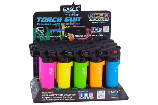 Eagle Torch 4″ Single Side Torch Gun Lighter Neon. 15 Torches In A Box Display.