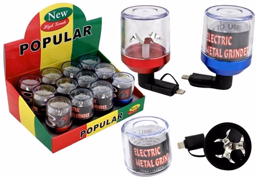 Electric Automatic Metal Mobile Grinder. Fits Micro USB and Lightning Cable Connectors. 12 Grinders In A Box Display.