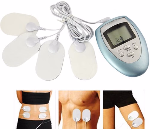 - Large, oval electrode pads for gentle massage.