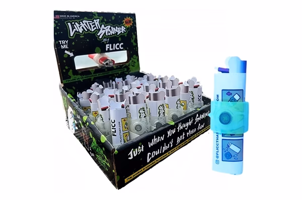 Flicc Bic Lighter Fidget Spinner Attachment. Glow in the Dark. 30 Spinners in a Box Display.